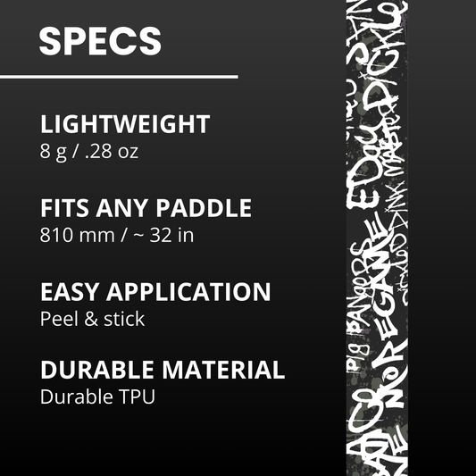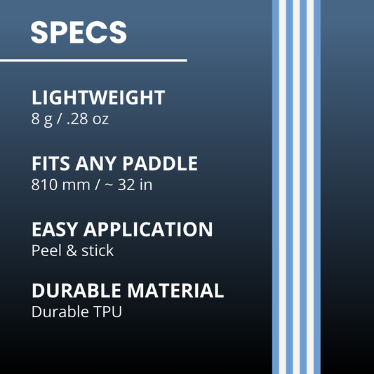Every hit, scrape, and ding slowly eats away at your paddle. Edgy edge tape provides instant protection to extend the lifespan of your paddle AND makes your paddle stand out from the crowd.